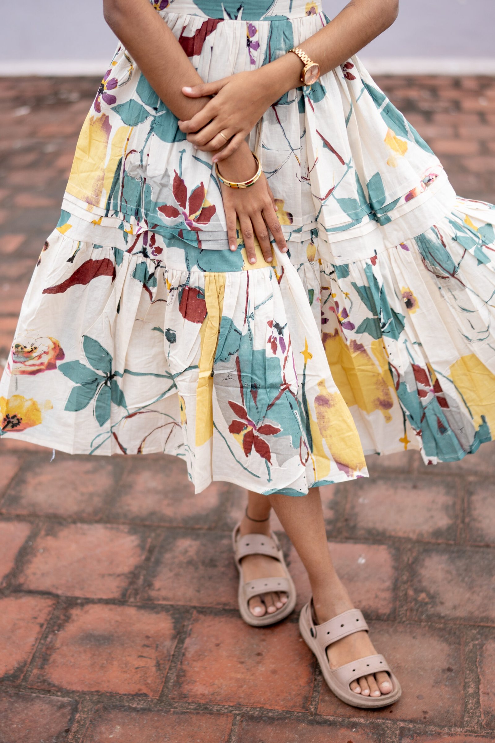 Inspired by blooming gardens and quiet moments of beauty, the Garden Muse Maxi is a soft expression of femininity and grace. The gentle interplay of colours evokes a fresh, floral charm, creating a look that feels light, airy, and effortlessly elegant.